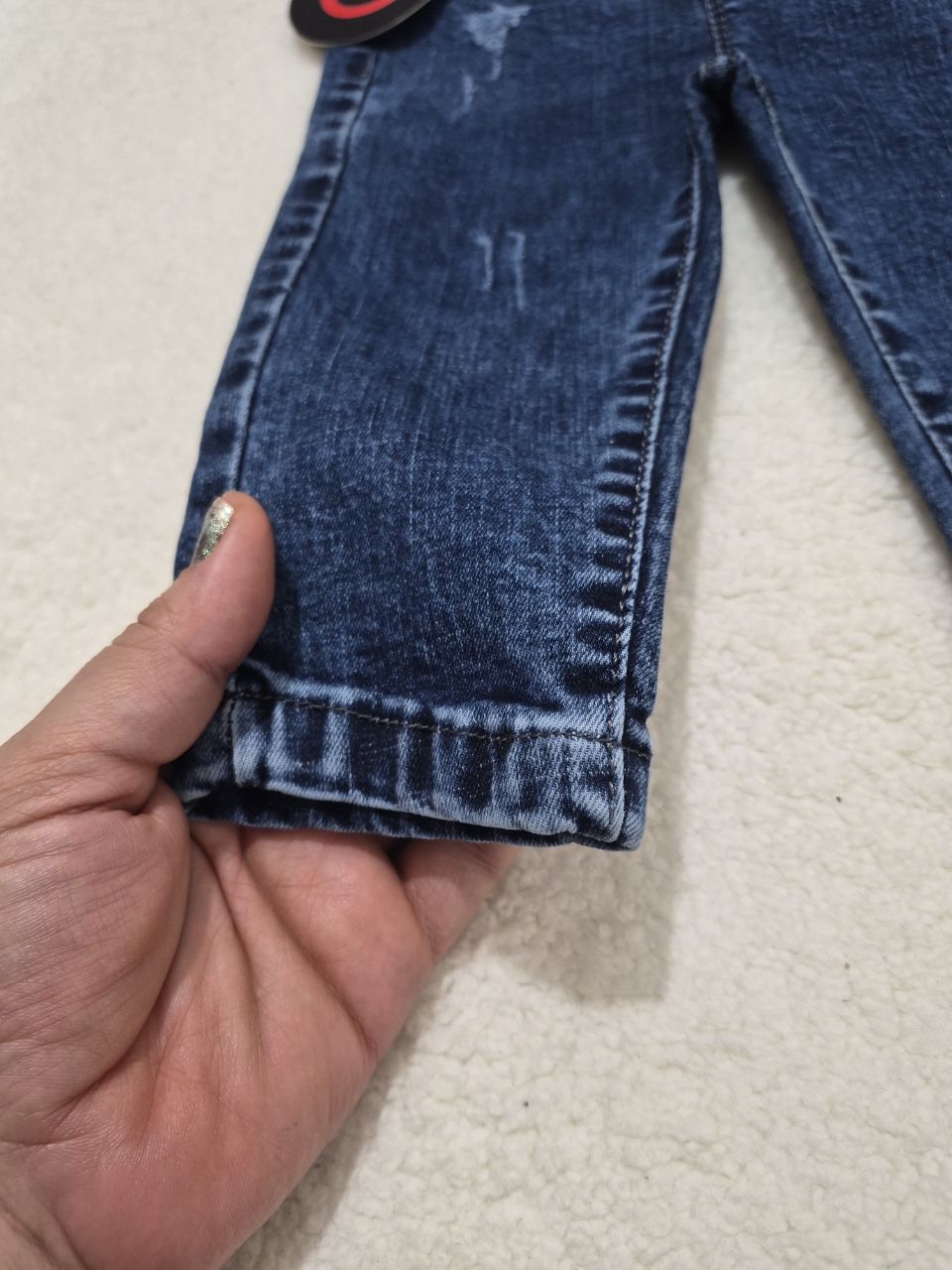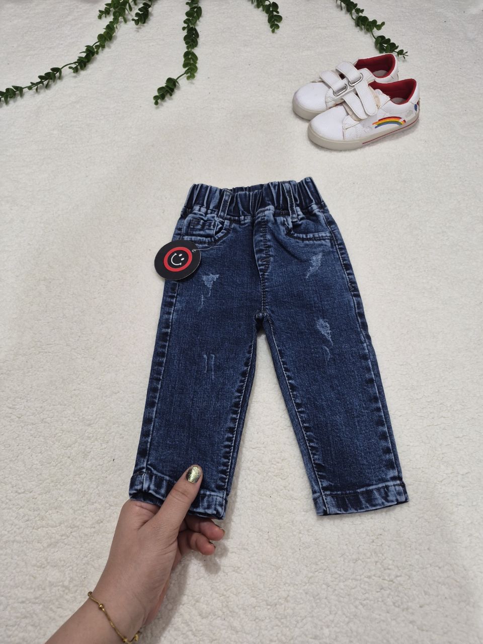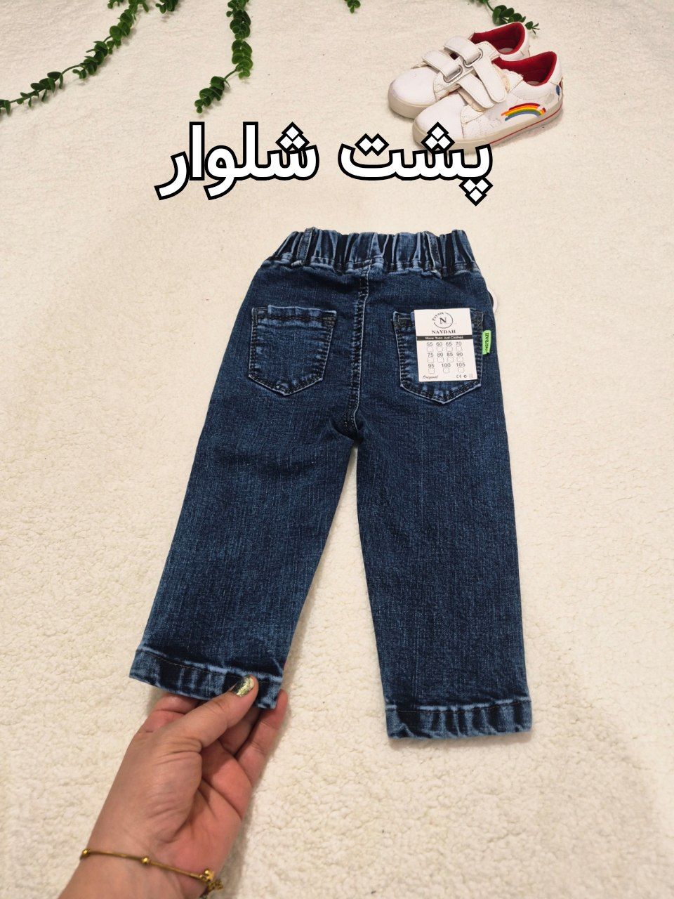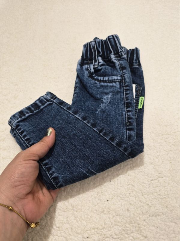 شلوار جین نقلی بچگانه مناسب دخترو پسر مقداری کشسانی هم داره اندازه هاش قد شلوار ۴۴ دور کمر بدون کشسانی ۴۶سانت قد شلوار ۵۰ دور کمر بدون کشسانی ۴۹ سانت