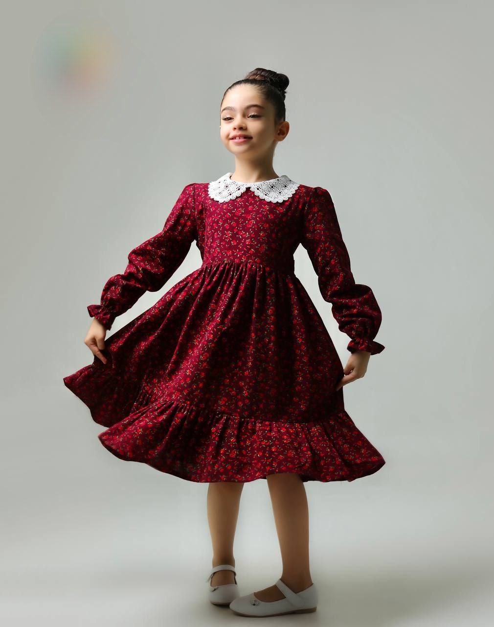 پیراهن و ژیله مخمل کبریتی دخترانه