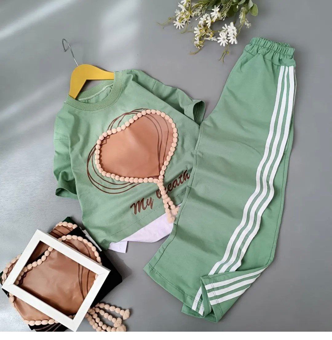 تیشرت شلواربگ دخترانه کارلش سایز۵۰تا۶۵ قیمت ۷۵۰دورنگ سبز و خردلی